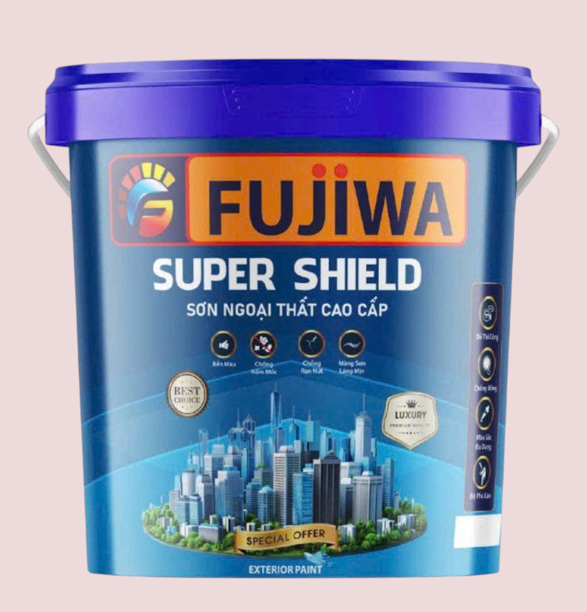 FUJIWA Super Shield là dòng sơn ngoại thất cao cấp được thiết kế đặc biệt để bảo vệ toàn diện và nâng tầm thẩm mỹ cho ngôi nhà. Với công nghệ tiên tiến và chất lượng vượt trội, sản phẩm mang lại khả năng chống chịu mọi điều kiện thời tiết khắc nghiệt, đảm bảo tường ngoại thất luôn bền đẹp theo thời gian.